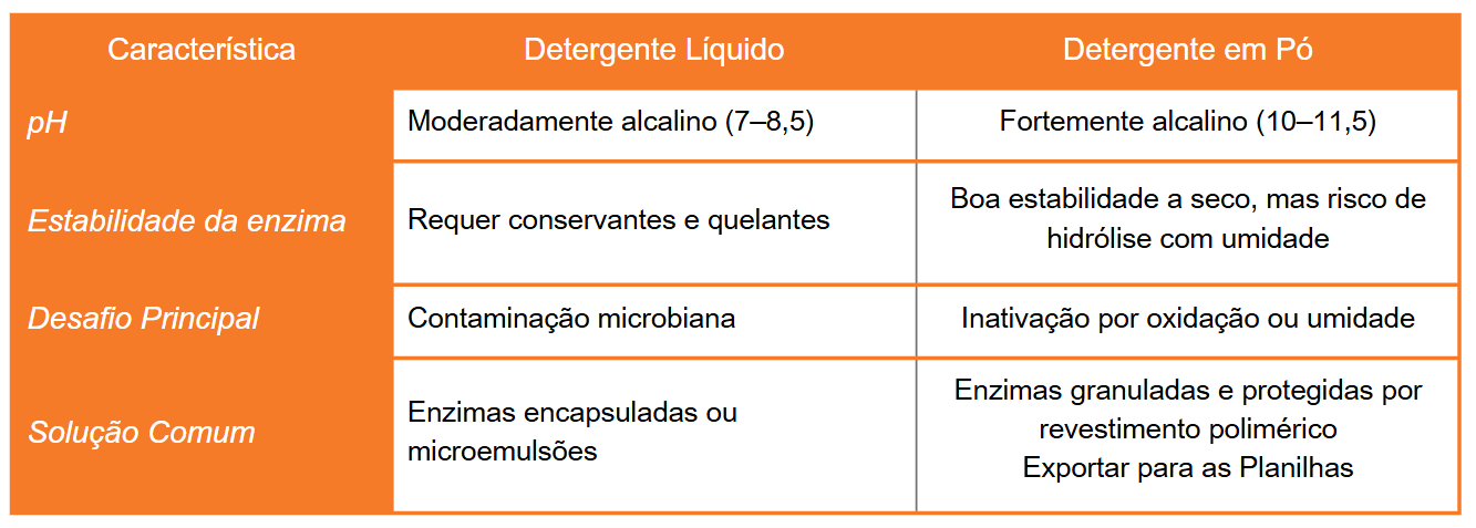 A proliferação microbiana pode levar à produção de proteases naturais que degradam as enzimas intencionalmente adicionadas ao produto, além de causarem alterações visuais indesejáveis e o desenvolvimento de odores desagradáveis no produto final.