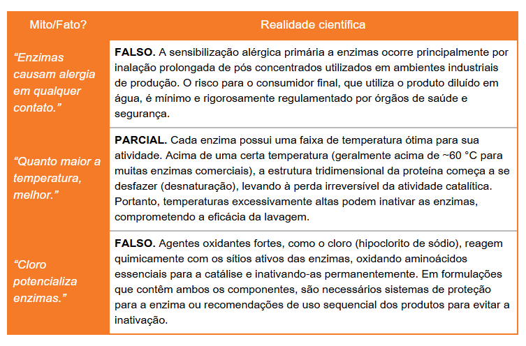 É importante desmistificar algumas crenças populares e entender as reais limitações das enzimas em detergentes: