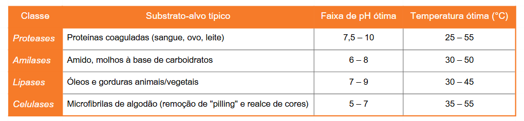 As enzimas, por sua vez, atuam como biocatalisadores altamente eficientes. Elas reduzem a energia de ativação necessária para as reações de quebra das moléculas que compõem as manchas. Essa ação catalítica permite lavagens eficazes em condições muito mais brandas, tipicamente na faixa de pH 6–10 e temperaturas inferiores a 40 °C.